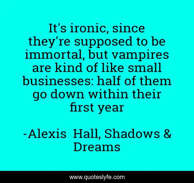 This page presents the quote "It's ironic, since they're supposed to be immortal, but vampires are kind of like small businesses: half of them go down within their first year". Author of this quote is Alexis Hall, Shadows & Dreams. This quote is about small-business, vampires,.