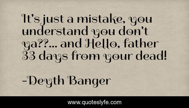 This page presents the quote "It's just a mistake, you understand you don't ya??... and Hello, father 33 days from your dead!". Author of this quote is Deyth Banger. This quote is about ya, father, dead, mistakes, don-t, mistake,.