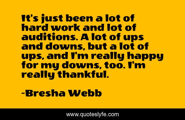 This page presents the quote "It's just been a lot of hard work and lot of auditions. A lot of ups and downs, but a lot of ups, and I'm really happy for my downs, too. I'm really thankful.". Author of this quote is Bresha Webb. This quote is about work, hard work, happy,.