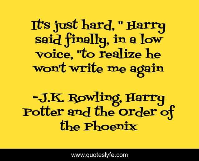 This page presents the quote "It's just hard, " Harry said finally, in a low voice, "to realize he won't write me again". Author of this quote is J.K. Rowling, Harry Potter and the Order of the Phoenix. .
