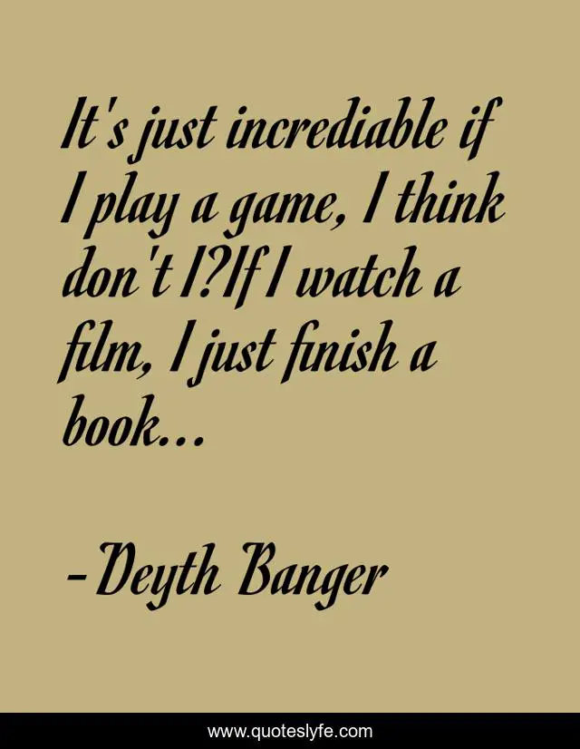 This page presents the quote "It's just incrediable if I play a game, I think don't I?If I watch a film, I just finish a book...". Author of this quote is Deyth Banger. This quote is about play, finish, i, game, book, don-t, incrediable,.