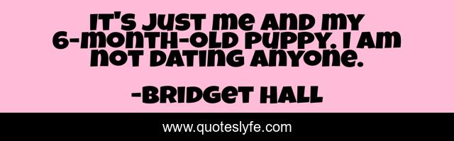 This page presents the quote "It's just me and my 6-month-old puppy. I am not dating anyone.". Author of this quote is Bridget Hall. This quote is about me, puppy,.