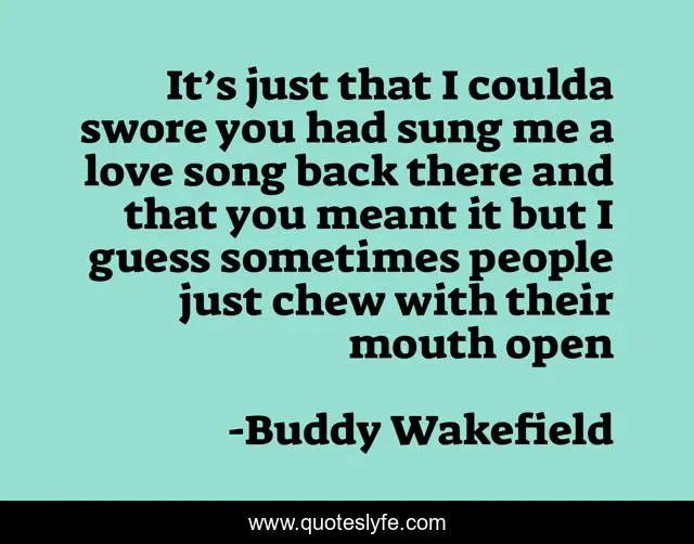 This page presents the quote "It’s just that I coulda swore you had sung me a love song back there and that you meant it but I guess sometimes people just chew with their mouth open". Author of this quote is Buddy Wakefield. This quote is about love, tragedy, affection,.