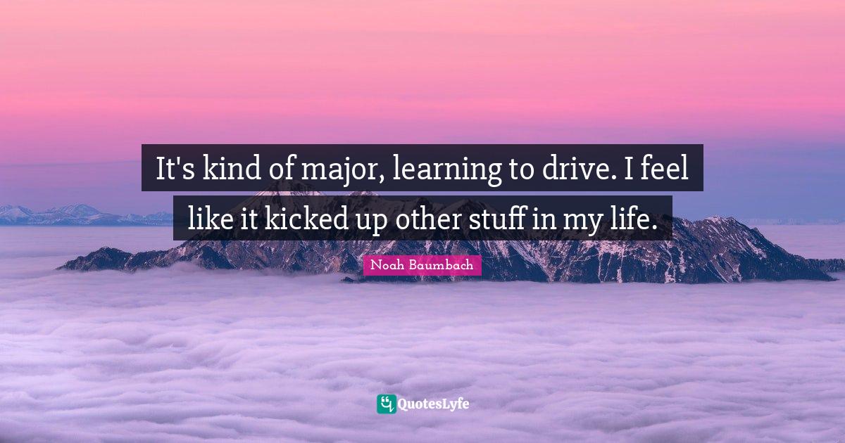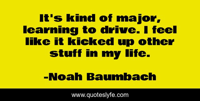 This page presents the quote "It's kind of major, learning to drive. I feel like it kicked up other stuff in my life.". Author of this quote is Noah Baumbach. This quote is about life, my life, drive,.