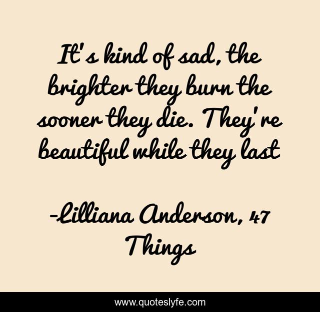 This page presents the quote "It's kind of sad, the brighter they burn the sooner they die. They're beautiful while they last". Author of this quote is Lilliana Anderson, 47 Things. .