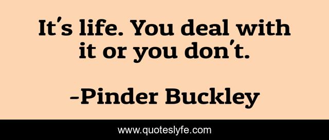 "Pinder Buckley Quotes." Quoteslyfe.com, 2025. Sat. 06 Dec. 2025. <https://www.quoteslyfe.com/quote/It-s-life-You-deal-with-it-21827>.