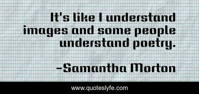 This page presents the quote "It's like I understand images and some people understand poetry.". Author of this quote is Samantha Morton. This quote is about understand, people,.