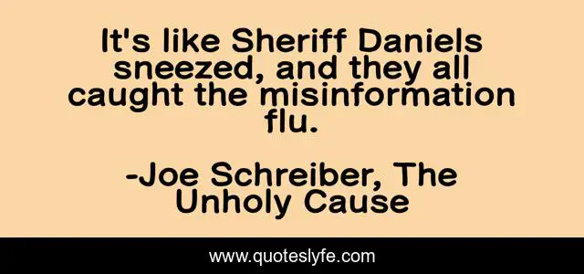 "Joe Schreiber, The Unholy Cause Quotes." Quoteslyfe.com, 2025. Sat. 06 Dec. 2025. <https://www.quoteslyfe.com/quote/It-s-like-Sheriff-Daniels-sneezed-and-231999>.