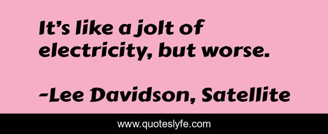 This page presents the quote "It’s like a jolt of electricity, but worse.". Author of this quote is Lee Davidson, Satellite. This quote is about fantasy, young-adult, humor, sarcastic-humor, angels,.