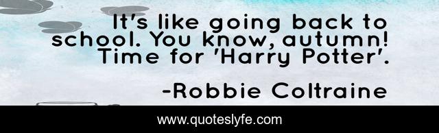 This page presents the quote "It's like going back to school. You know, autumn! Time for 'Harry Potter'.". Author of this quote is Robbie Coltraine. This quote is about autumn, school,.
