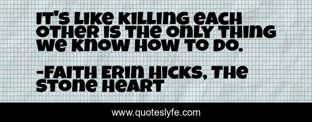 "Faith Erin Hicks, The Stone Heart Quotes." Quoteslyfe.com, 2025. Sun. 07 Dec. 2025. <https://www.quoteslyfe.com/quote/It-s-like-killing-each-other-is-30796>.