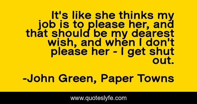 This page presents the quote "It's like she thinks my job is to please her, and that should be my dearest wish, and when I don't please her - I get shut out.". Author of this quote is John Green, Paper Towns. .
