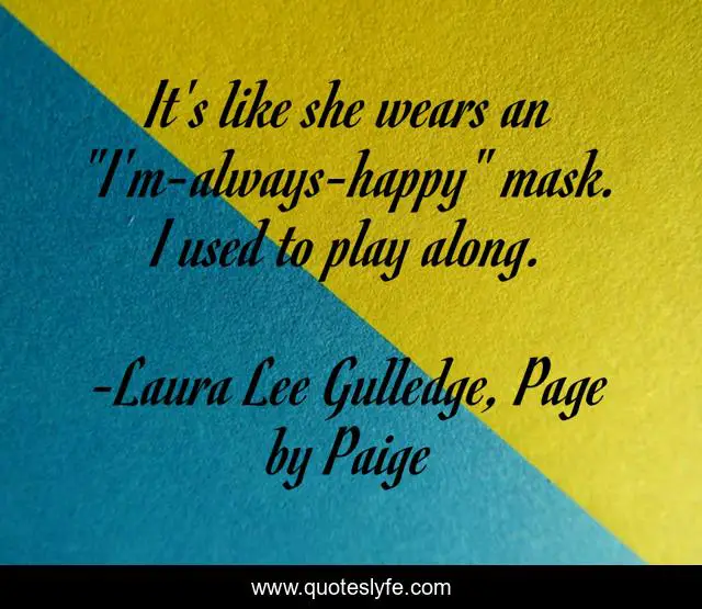This page presents the quote "It's like she wears an "I'm-always-happy" mask. I used to play along.". Author of this quote is Laura Lee Gulledge, Page by Paige. This quote is about happy, masking-emotions,.