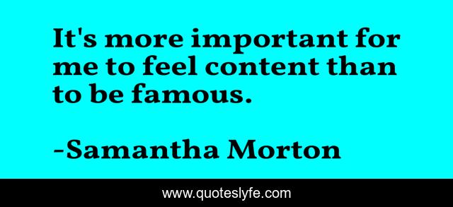 This page presents the quote "It's more important for me to feel content than to be famous.". Author of this quote is Samantha Morton. This quote is about me, content, important,.