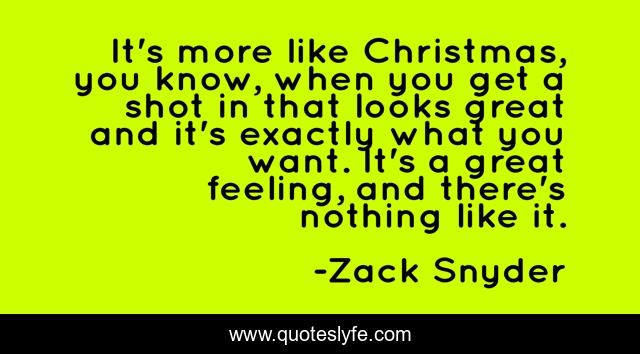 This page presents the quote "It's more like Christmas, you know, when you get a shot in that looks great and it's exactly what you want. It's a great feeling, and there's nothing like it.". Author of this quote is Zack Snyder. .