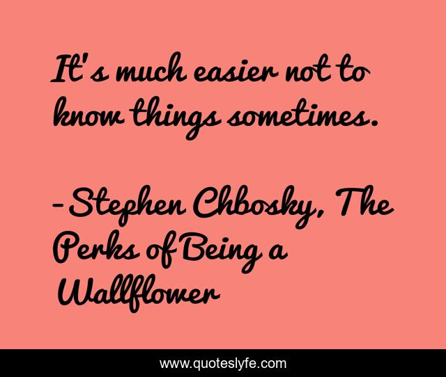 This page presents the quote "It's much easier not to know things sometimes.". Author of this quote is Stephen Chbosky, The Perks of Being a Wallflower. This quote is about true, sad,.