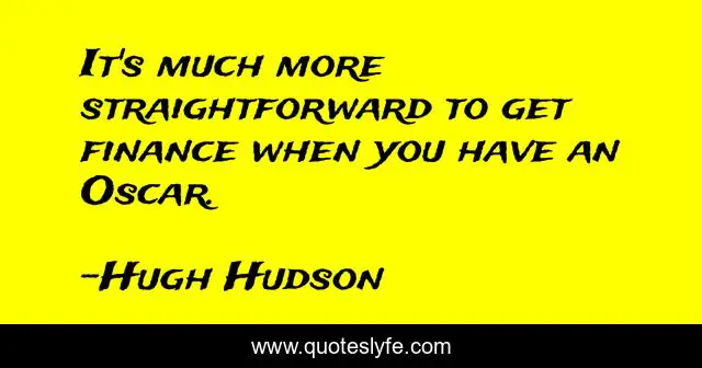 This page presents the quote "It's much more straightforward to get finance when you have an Oscar.". Author of this quote is Hugh Hudson. This quote is about oscar, straightforward,.