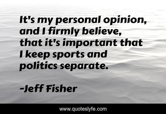 This page presents the quote "It's my personal opinion, and I firmly believe, that it's important that I keep sports and politics separate.". Author of this quote is Jeff Fisher. This quote is about politics, believe, opinion,.
