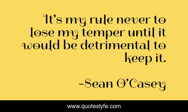 This page presents the quote "It's my rule never to lose my temper until it would be detrimental to keep it.". Author of this quote is Sean O'Casey. .
