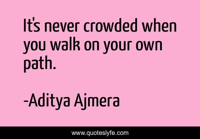 This page presents the quote "It's never crowded when you walk on your own path.". Author of this quote is Aditya Ajmera. This quote is about freedom, awareness, path,.