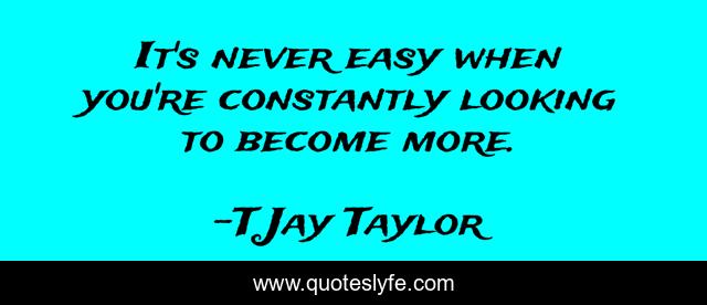 This page presents the quote "It's never easy when you're constantly looking to become more.". Author of this quote is T Jay Taylor. This quote is about toughness, success, personal-growth, challenge, improvement, excellence, perfection, greatness, opportunity,.