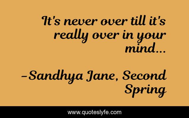 This page presents the quote "It's never over till it's really over in your mind...". Author of this quote is Sandhya Jane, Second Spring. This quote is about life, love, breakup, breakups, happiness-advice, happiness, love-story, affection, inspiration,.