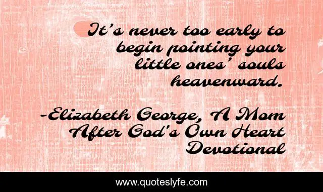 This page presents the quote "It’s never too early to begin pointing your little ones’ souls heavenward.". Author of this quote is Elizabeth George, A Mom After God's Own Heart Devotional. This quote is about little, heaven, parent, begin, soul, early, parenting, mom, children,.