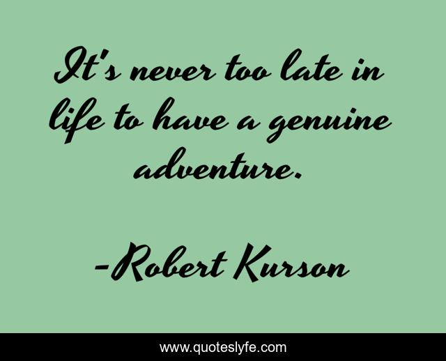 This page presents the quote "It's never too late in life to have a genuine adventure.". Author of this quote is Robert Kurson. This quote is about late, adventure, too late,.