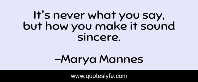 "Marya Mannes Quotes." Quoteslyfe.com, 2025. Mon. 08 Dec. 2025. <https://www.quoteslyfe.com/quote/It-s-never-what-you-say-but-288555>.