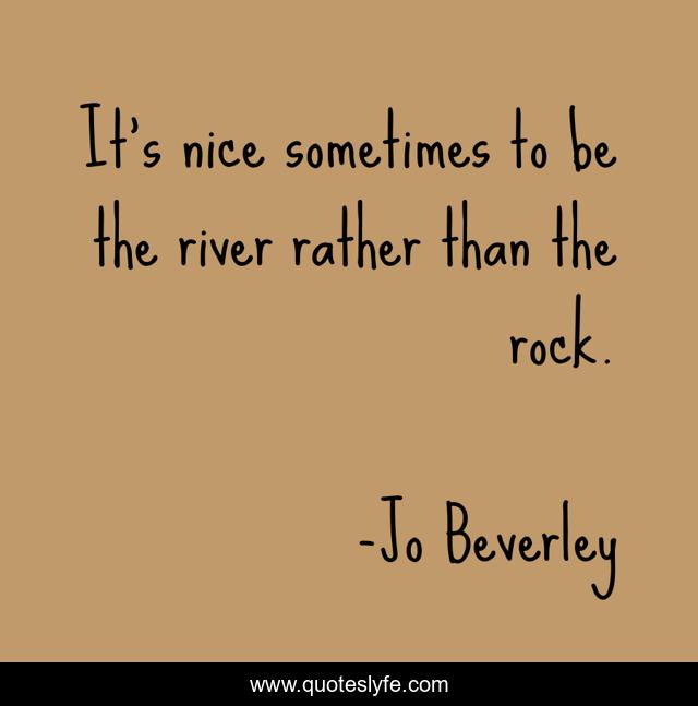 This page presents the quote "It's nice sometimes to be the river rather than the rock.". Author of this quote is Jo Beverley. This quote is about challenge-and-attitude, life-changing,.