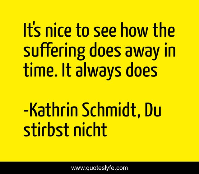 This page presents the quote "It's nice to see how the suffering does away in time. It always does". Author of this quote is Kathrin Schmidt, Du stirbst nicht. This quote is about suffering, pain, dying, time,.