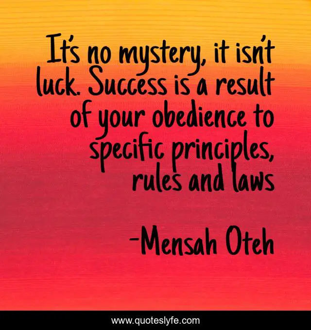 It’s no mystery, it isn’t luck. Success is a result of your obedience to specific principles, rules and laws