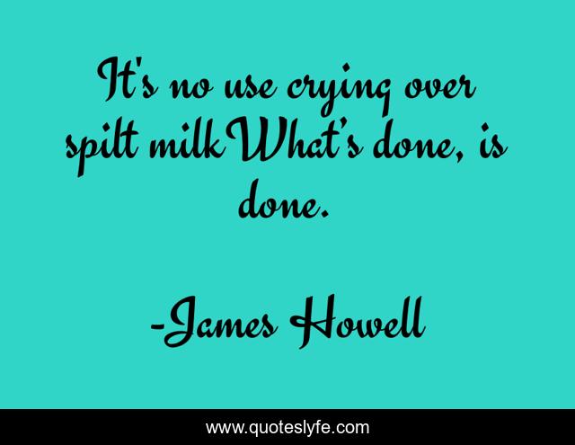 This page presents the quote "It's no use crying over spilt milkWhat’s done, is done.". Author of this quote is James Howell. .