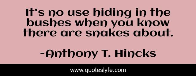 This page presents the quote "It's no use hiding in the bushes when you know there are snakes about.". Author of this quote is Anthony T. Hincks. This quote is about bushes, life, snakes, philosophy, hidden, hiding,.
