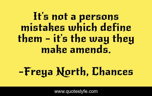 This page presents the quote "It's not a persons mistakes which define them - it's the way they make amends.". Author of this quote is Freya North, Chances. This quote is about making-amends, mistakes,.