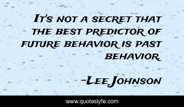 This page presents the quote "It's not a secret that the best predictor of future behavior is past behavior.". Author of this quote is Lee Johnson. This quote is about enthusiasm, behavior, inspirational, psychology,.