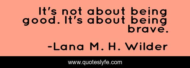 This page presents the quote "It's not about being good. It's about being brave.". Author of this quote is Lana M. H. Wilder. This quote is about be, good, being, being-brave, wilderwhimsy, lana-wilder, bravery,.