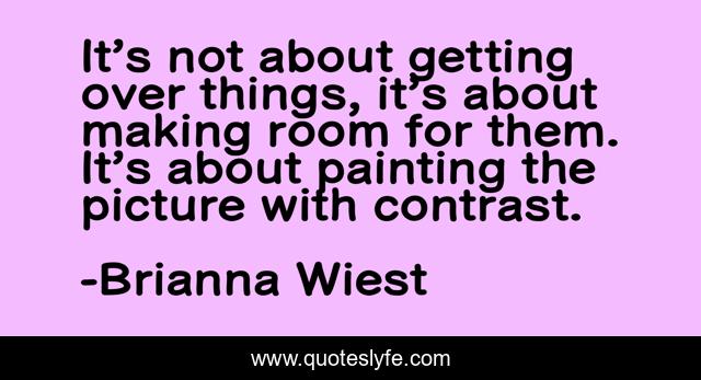 This page presents the quote "It’s not about getting over things, it’s about making room for them. It’s about painting the picture with contrast.". Author of this quote is Brianna Wiest. This quote is about relationships, life, love, hardship, advice, wisdom, struggle, affection,.