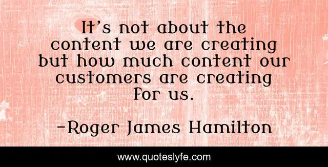 This page presents the quote "It’s not about the content we are creating but how much content our customers are creating for us.". Author of this quote is Roger James Hamilton. This quote is about customers, business, startup, entrepreneurship, entrepreneur, entrepreneurial, startups,.