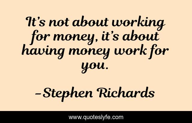 "Stephen Richards Quotes." Quoteslyfe.com, 2025. Sun. 07 Dec. 2025. <https://www.quoteslyfe.com/quote/It-s-not-about-working-for-money-16136>.