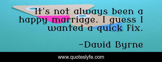 This page presents the quote "It's not always been a happy marriage. I guess I wanted a quick fix.". Author of this quote is David Byrne. This quote is about happy marriage, fix, happy,.