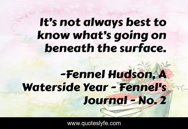 This page presents the quote "It’s not always best to know what’s going on beneath the surface.". Author of this quote is Fennel Hudson, A Waterside Year - Fennel's Journal - No. 2. This quote is about ignorance-is-bliss, awareness,.