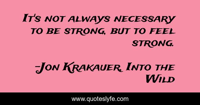This page presents the quote "It's not always necessary to be strong, but to feel strong.". Author of this quote is Jon Krakauer, Into the Wild. This quote is about empowerment, strength,.