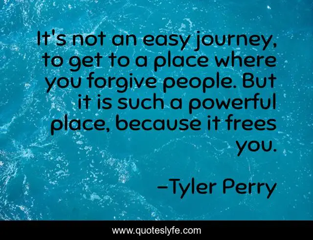 This page presents the quote "It's not an easy journey, to get to a place where you forgive people. But it is such a powerful place, because it frees you.". Author of this quote is Tyler Perry. This quote is about freedom, life, journey, forgiveness,.