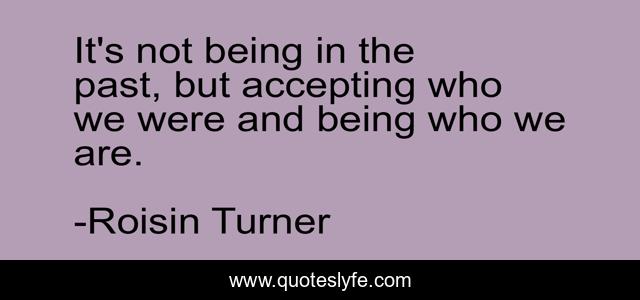 This page presents the quote "It's not being in the past, but accepting who we were and being who we are.". Author of this quote is Roisin Turner. This quote is about past, enthusiasm, life, identity, inspirational,.