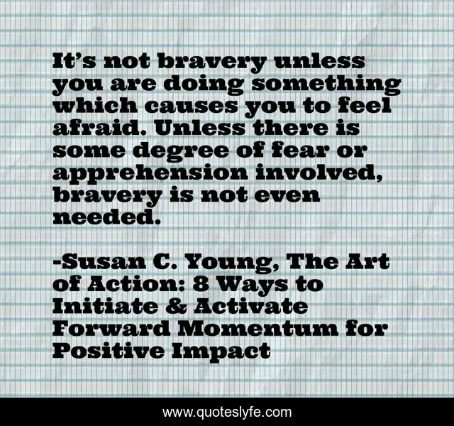 "Susan C. Young, The Art of Action: 8 Ways to Initiate & Activate Forward Momentum for Positive Impact Quotes." Quoteslyfe.com, 2025. Fri. 05 Dec. 2025. <https://www.quoteslyfe.com/quote/It-s-not-bravery-unless-you-are-233477>.