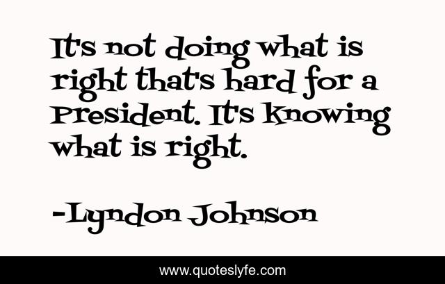 This page presents the quote "It's not doing what is right that's hard for a President. It's knowing what is right.". Author of this quote is Lyndon Johnson. This quote is about presidency, decision-making, discernment, professionalism, ethics, judgment, morality,.