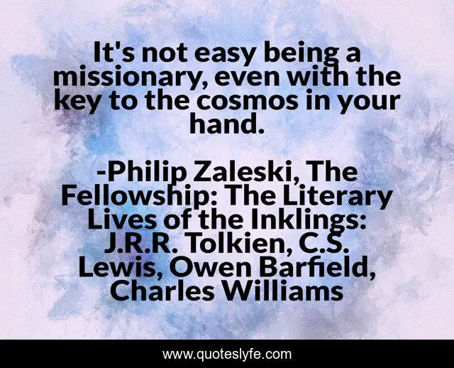 "Philip Zaleski, The Fellowship: The Literary Lives of the Inklings: J.R.R. Tolkien, C.S. Lewis, Owen Barfield, Charles Williams Quotes." Quoteslyfe.com, 2025. Fri. 05 Dec. 2025. <https://www.quoteslyfe.com/quote/It-s-not-easy-being-a-missionary-205916>.