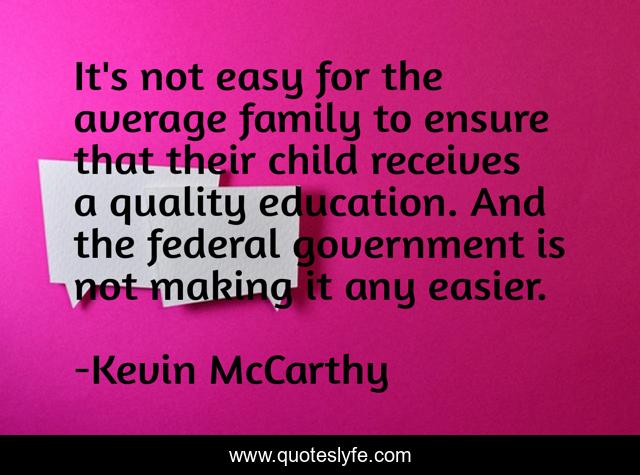 This page presents the quote "It's not easy for the average family to ensure that their child receives a quality education. And the federal government is not making it any easier.". Author of this quote is Kevin McCarthy. This quote is about government, family, child,.