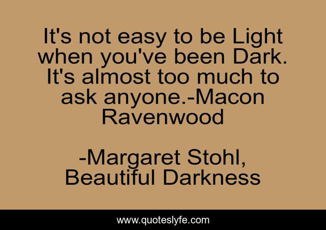 This page presents the quote "It's not easy to be Light when you've been Dark. It's almost too much to ask anyone.-Macon Ravenwood". Author of this quote is Margaret Stohl, Beautiful Darkness. This quote is about light, beautiful-darkness, darkness,.